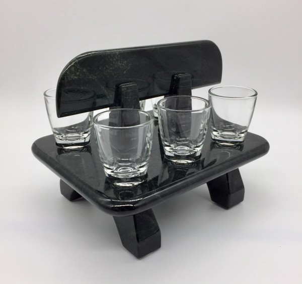 Bankerl aus Edelserpentin mit Glasstamperl in Handarbeit gefertigt Größe: 18,5 cm x 15,3 cm... mehr